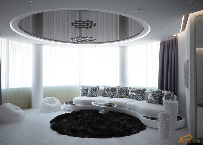 Разрабатывая внутреннюю планировку, архитектор хотел «сыграть» на контрасте: верхний этаж оформлен в светлых тонах, а внизу, наоборот доминируют темные оттенки.